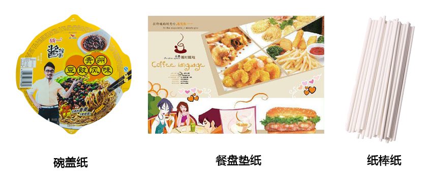 产品克重范围25-80g/m²,有白色、本色等,具有强度高,印刷效果好,防潮、防粘、防霉等特点,分内包装和外包装两大类,多用于制作食品袋、餐盘垫纸、干燥剂袋、酒精干湿包等,覆膜和铝箔后可作为桶装大碗面碗盖使用。